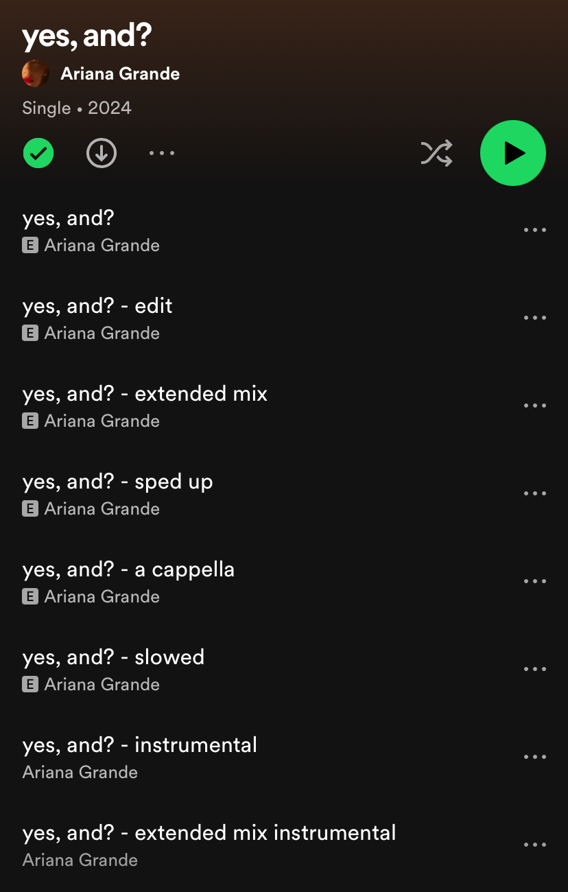 | Versões de “yes, and?” disponíveis em plataforma de streaming (Reprodução: Spotify) |